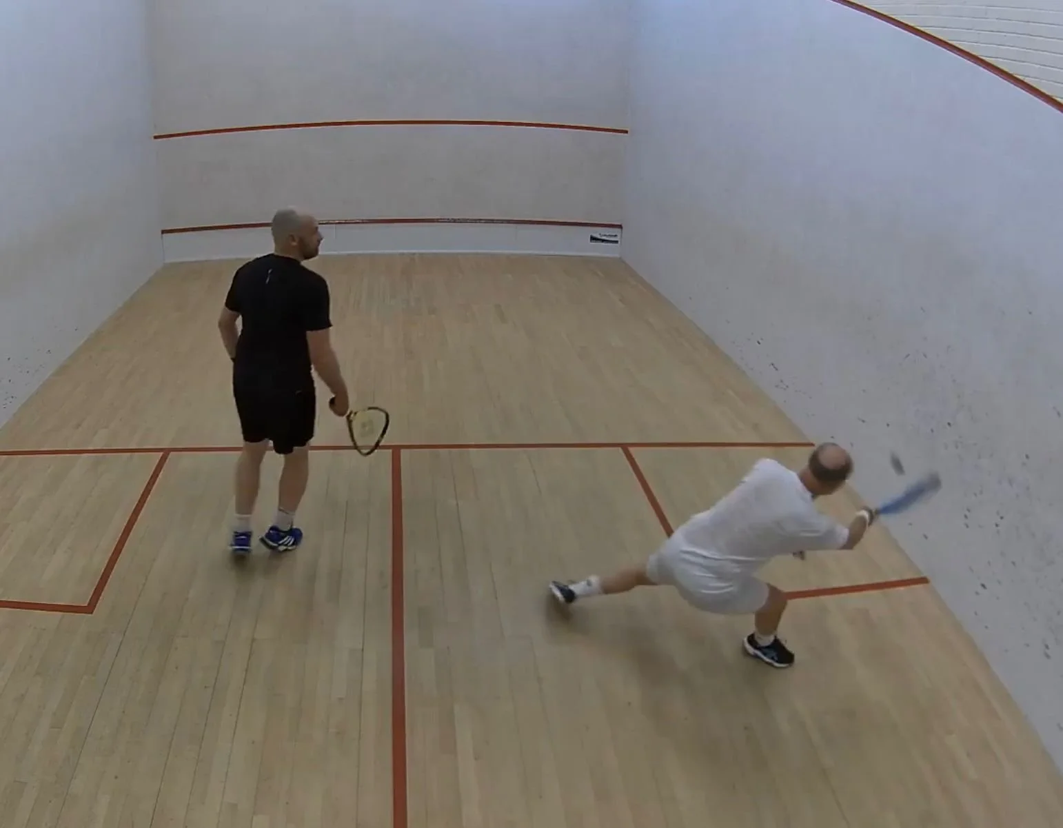 The serve can hit anywhere on the front wall but must land in the opposite back quarter. After the serve, the rules are essentially the same as squash — players take turns hitting the ball, and the rally ends when someone fails to return it before the second bounce or hits it out of court.